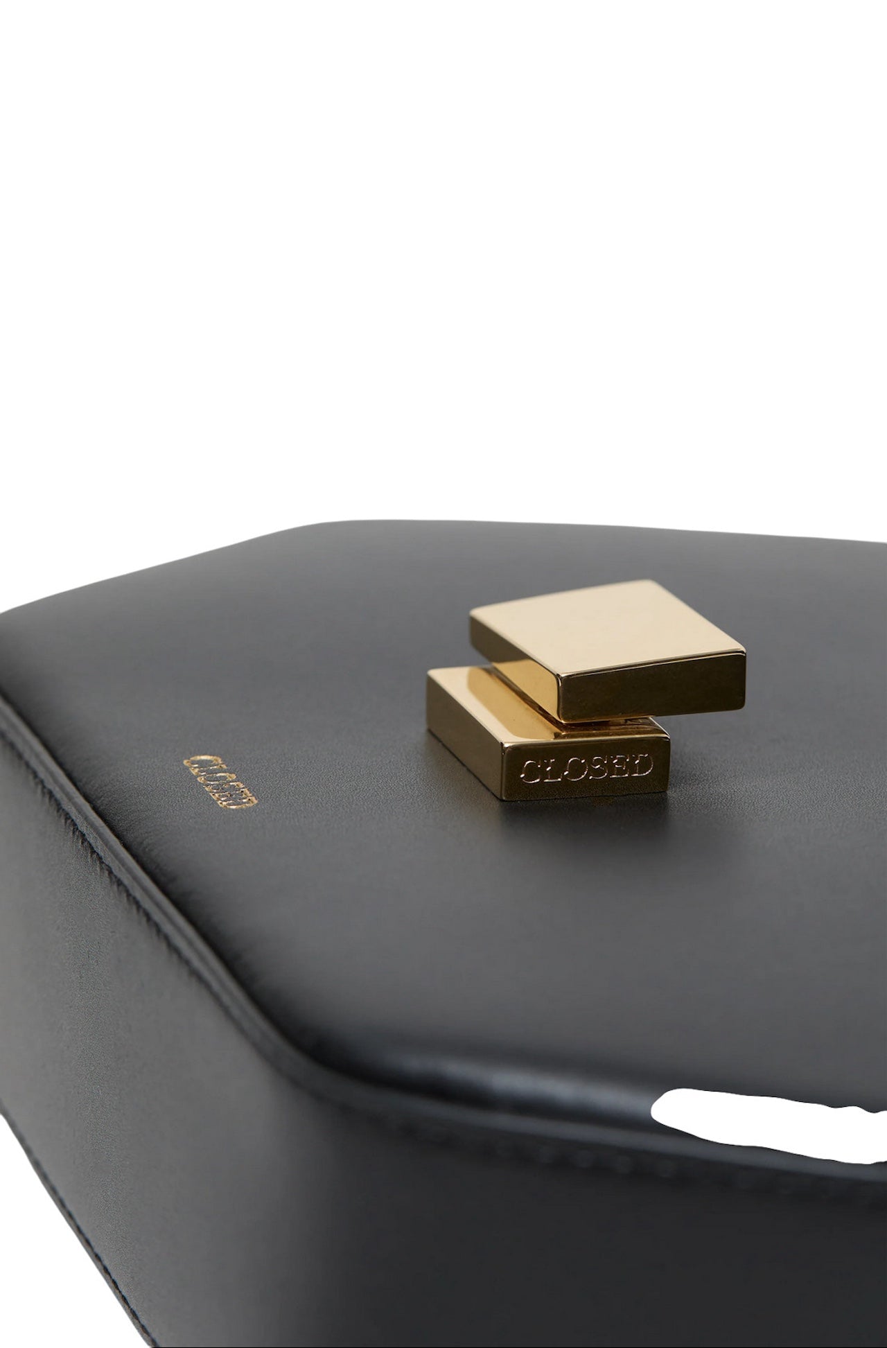 La borsa presenta una chiusura geometrica in metallo e uno scomparto interno chiudibile con badge Closed. Il nostro logo in rilievo decora la parte anteriore.