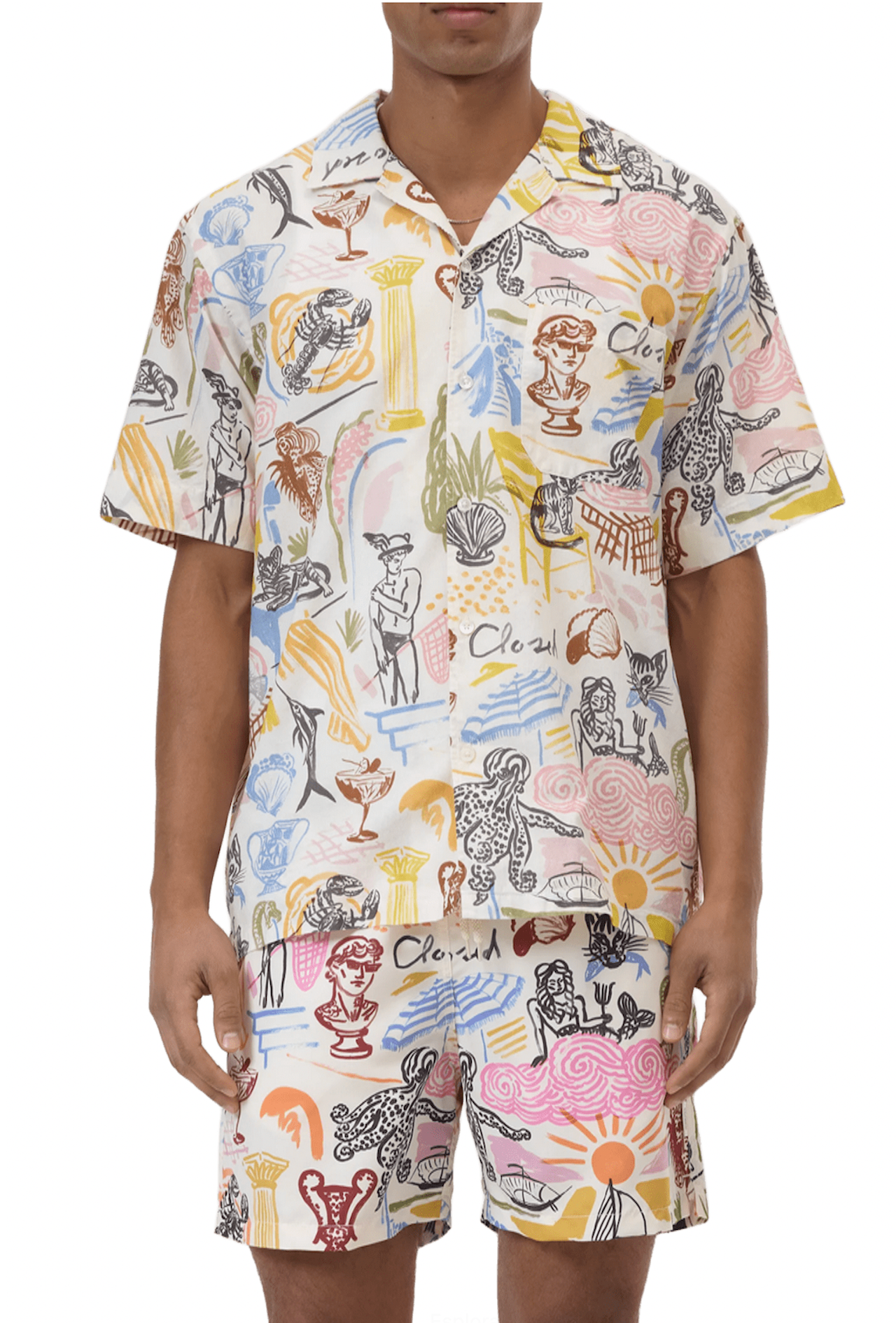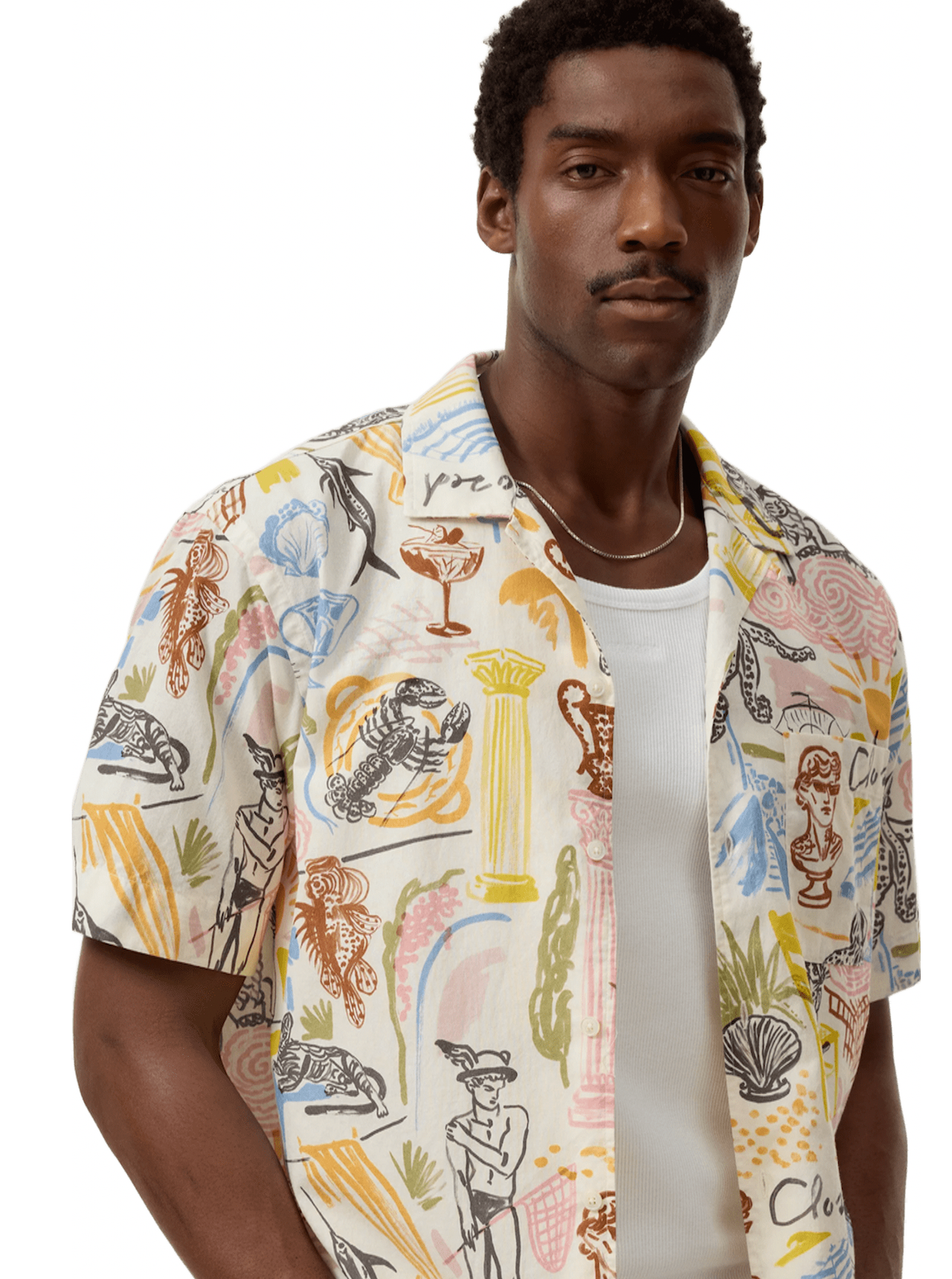 Questa camicia dalla vestibilità regolare presenta una stampa grafica su un tessuto di alta qualità. Caratterizzata da maniche corte e colletto in stile resort, offre una silhouette comoda per le giornate calde. Realizzata in 100% cotone. La chiusura con bottoni e la cura nella realizzazione riflettono la qualità artigianale portoghese. Il modello (185 cm) indossa la taglia M Lunghezza: 74,5 cm (taglia M) Prodotta in Portogallo 100% cotone Lavaggio delicato a 30°C Non candeggiare Non asciugare in asciugatrice Stirare a temperatura moderata Lavaggio a secco