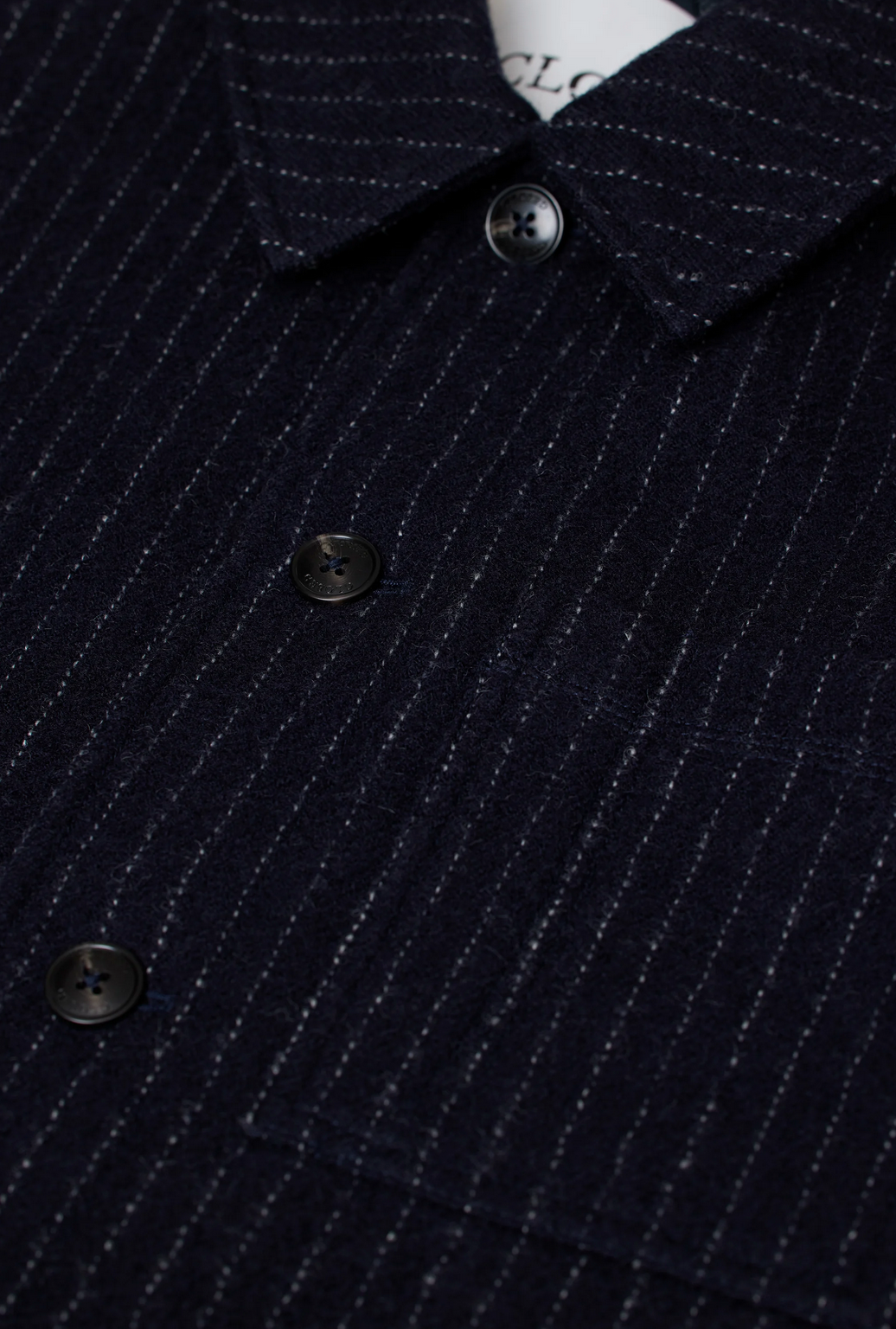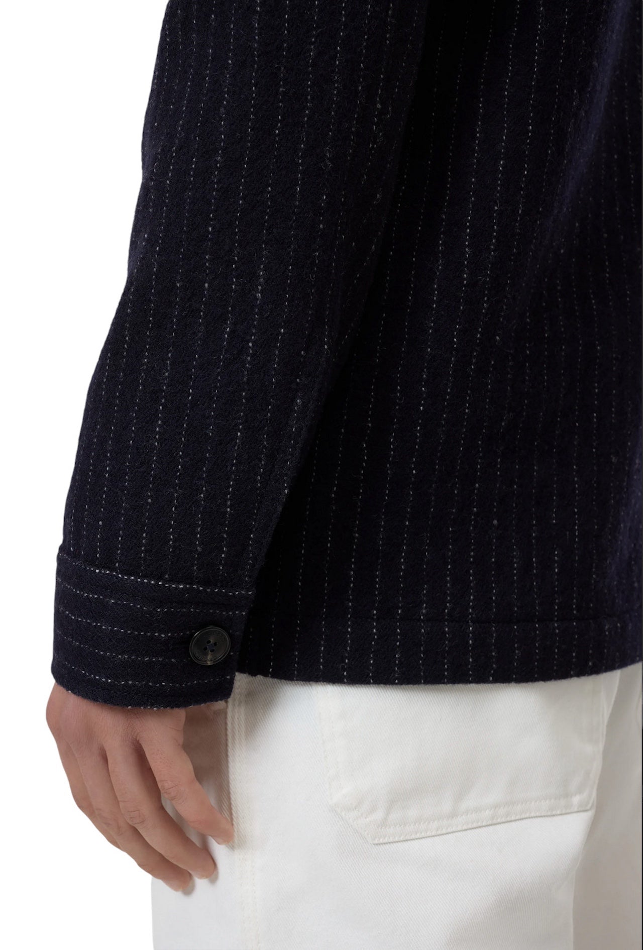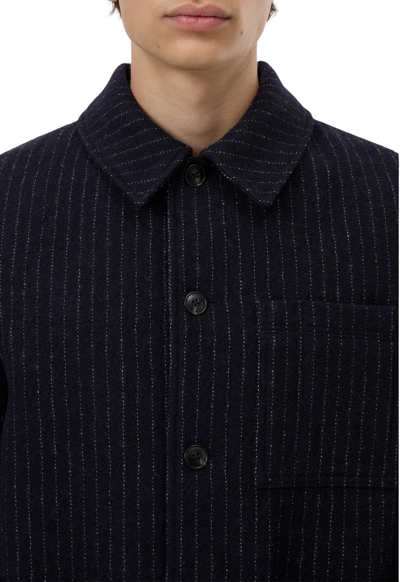 Lana gessata italiana con finitura spazzolata caratterizza questa giacca Atelier dalla vestibilità regolare, foderata in puro cotone per il massimo comfort.