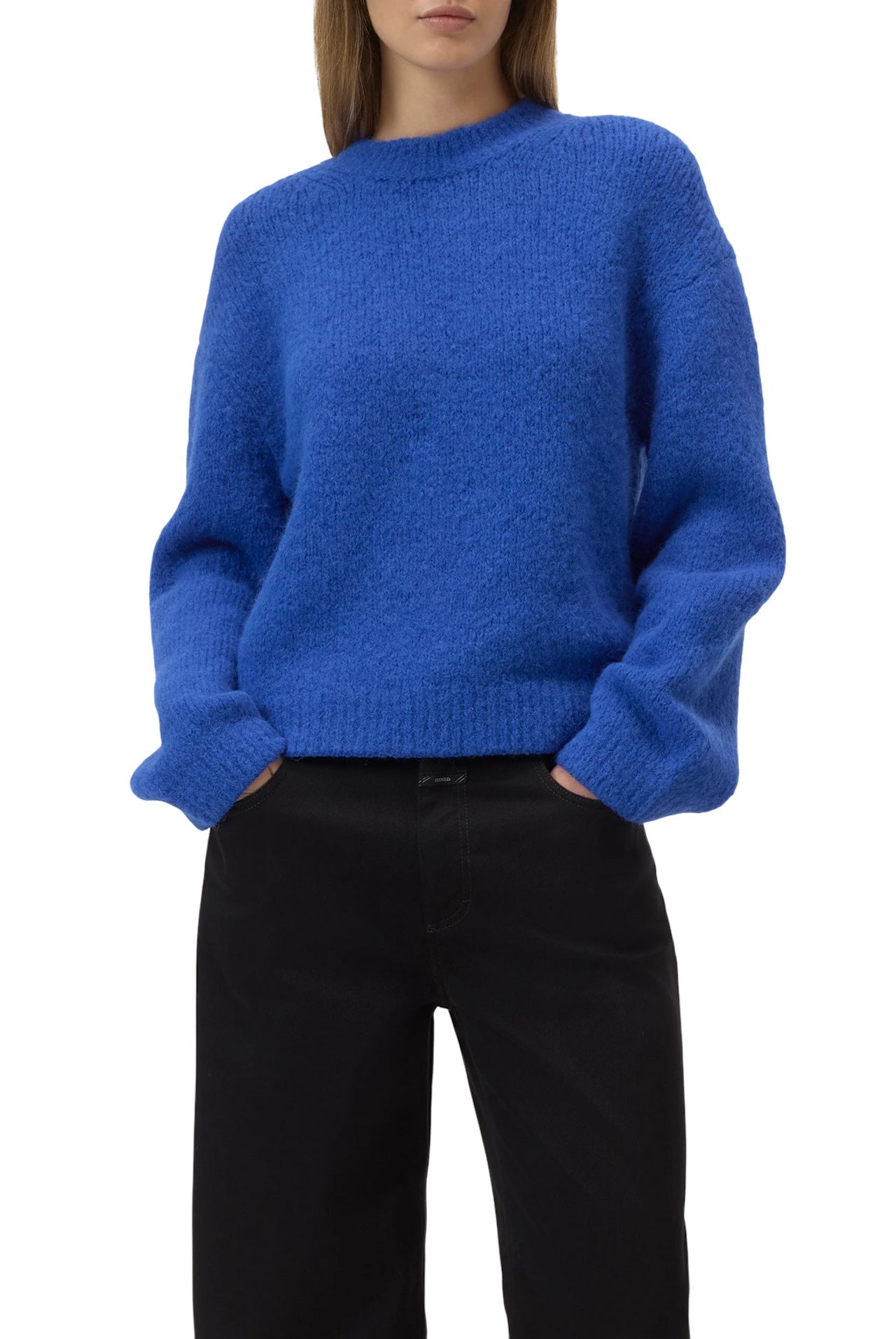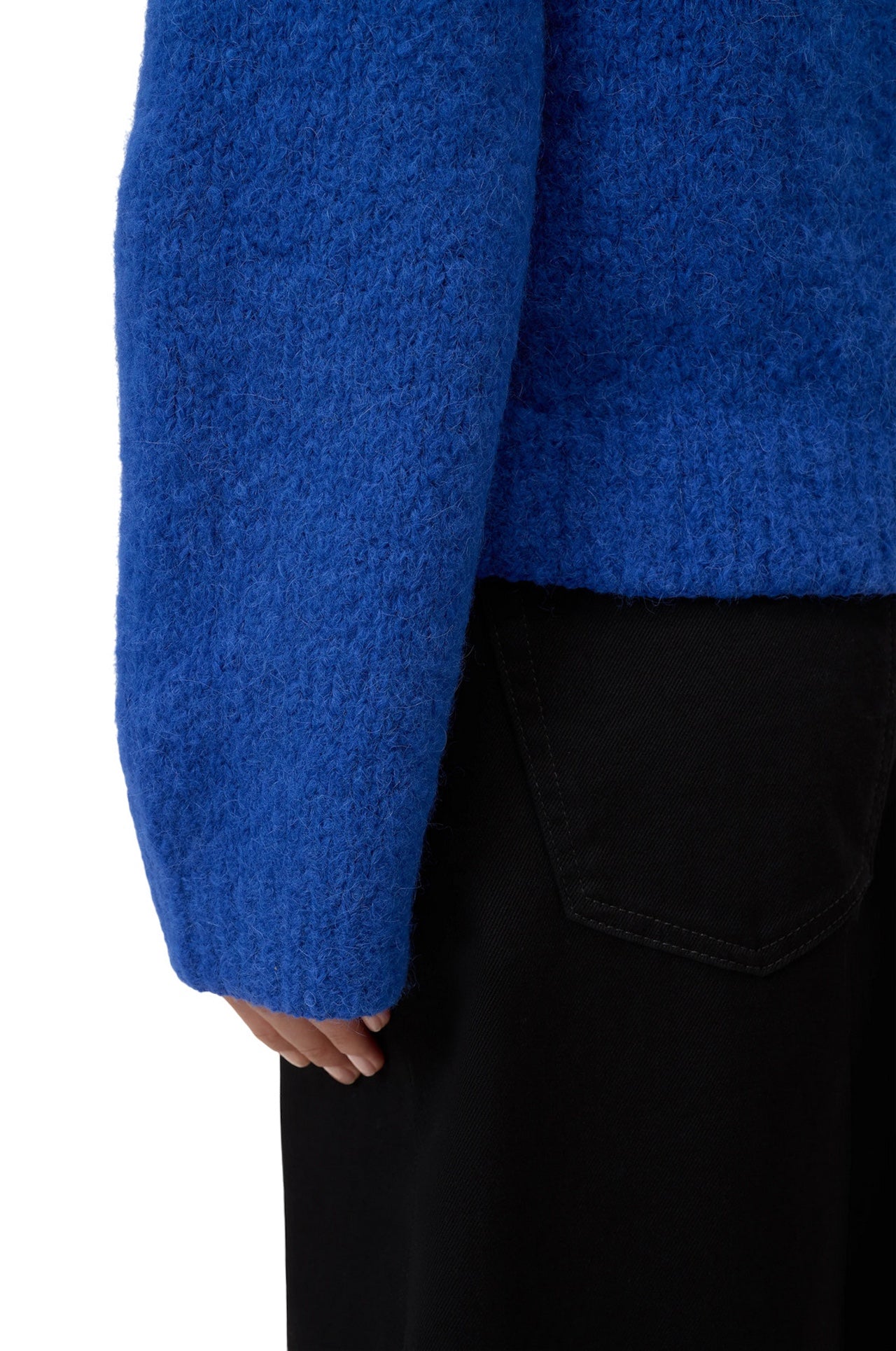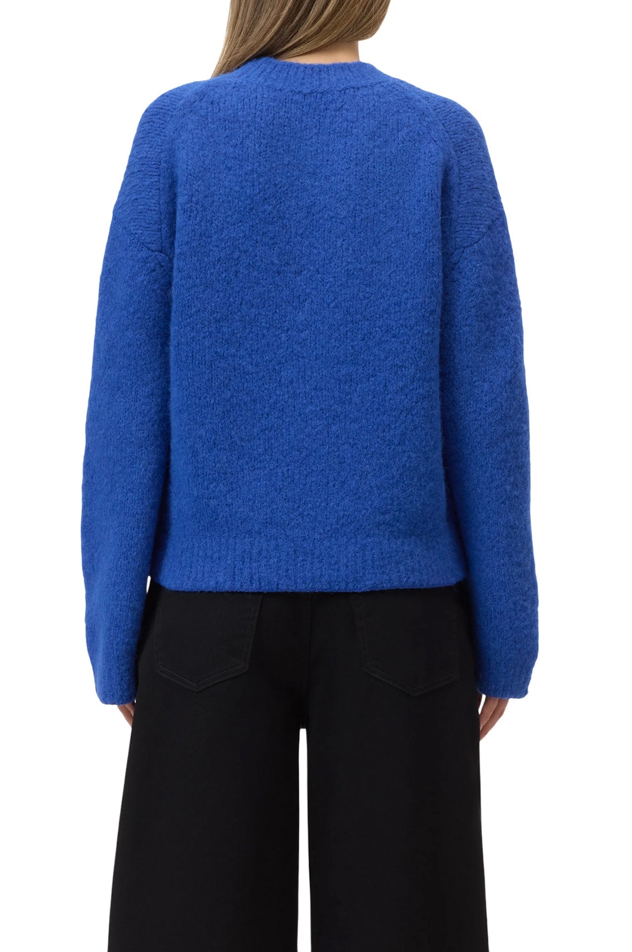 Realizzato in filato misto alpaca di alta qualità, questo maglione girocollo dalla vestibilità regolare con spalle scese si distingue per la sua superficie fortemente spazzolata.