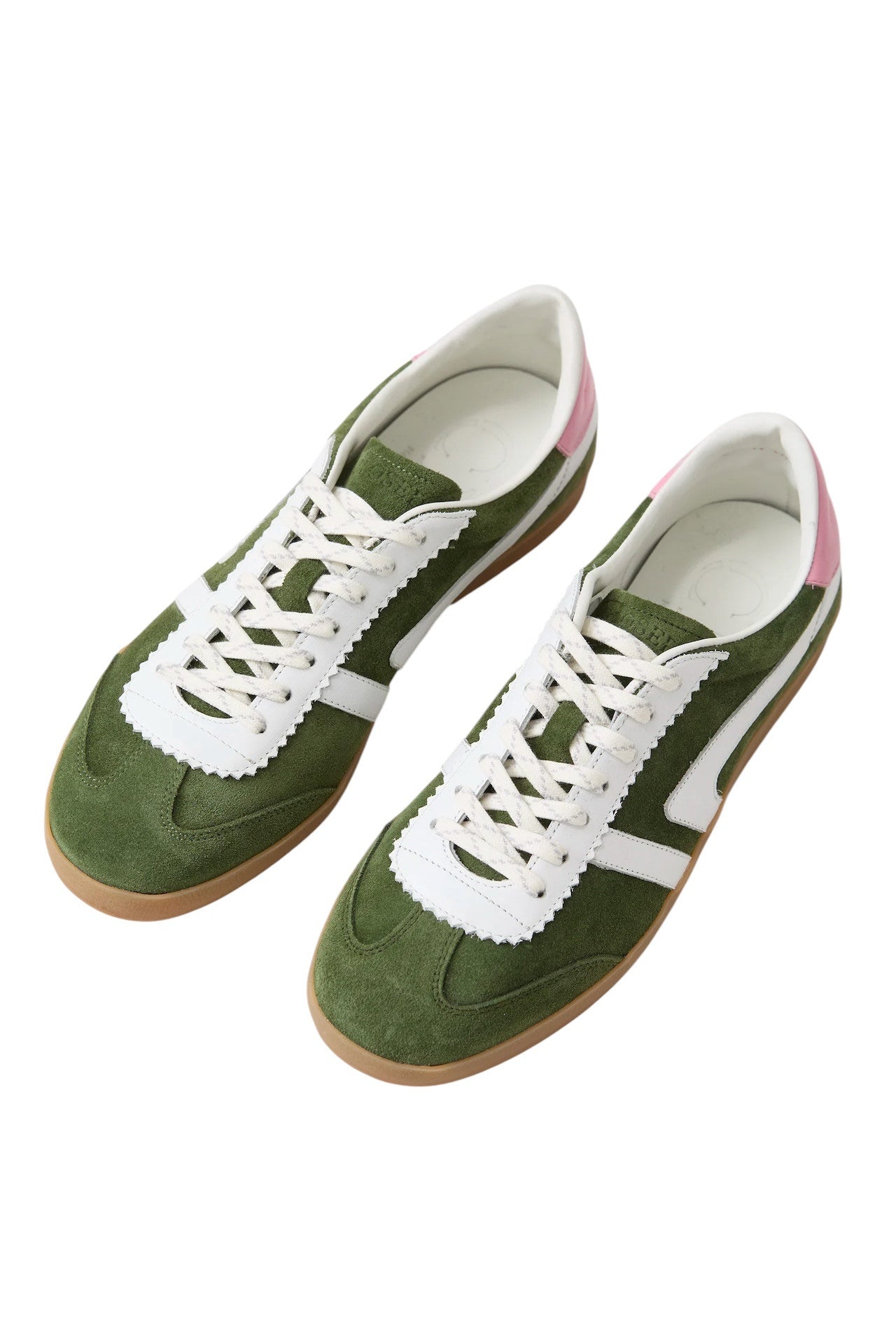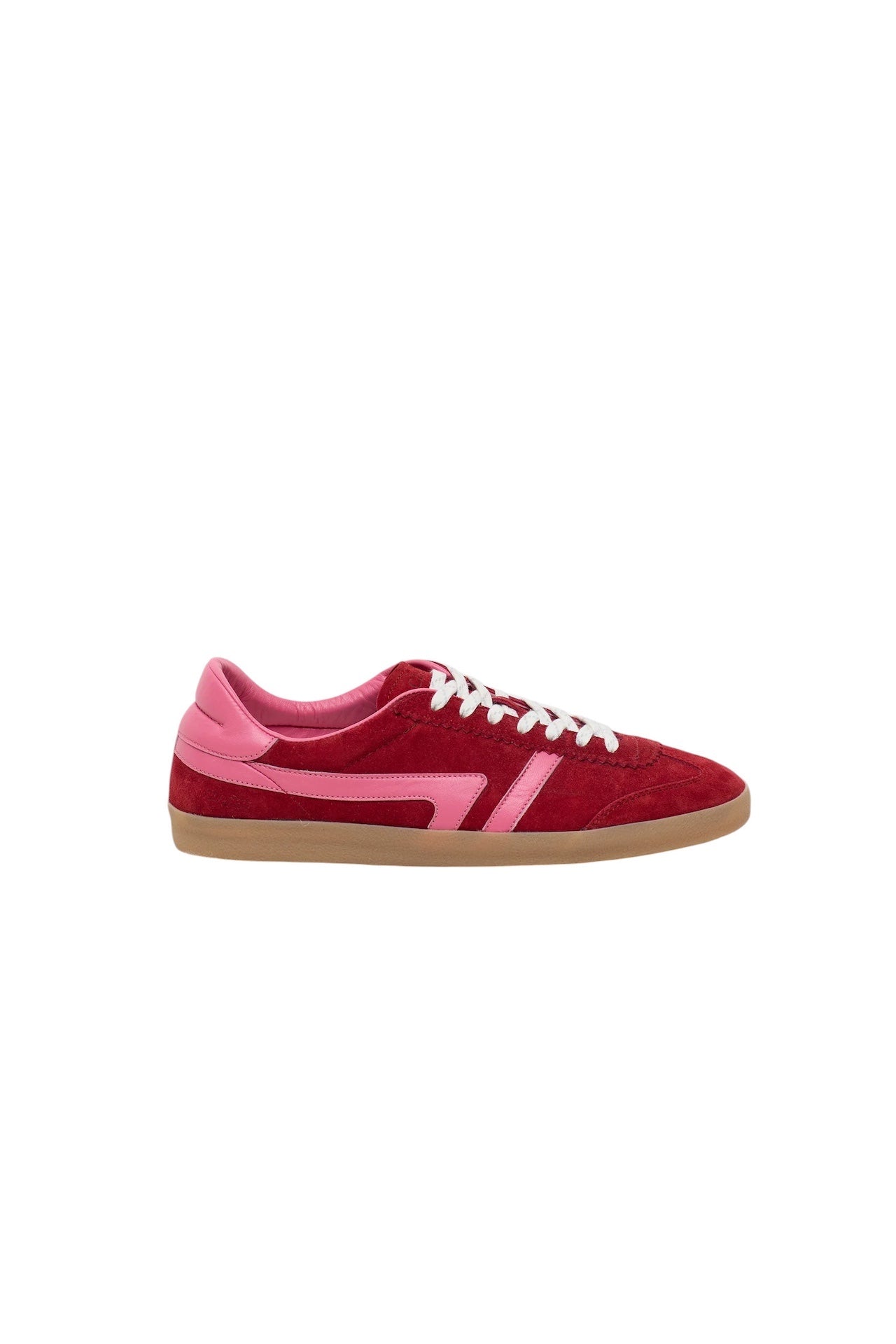 Sneakers artigianali realizzate in pelle scamosciata italiana con dettagli in nappa, caratterizzate da un'elegante silhouette bassa.