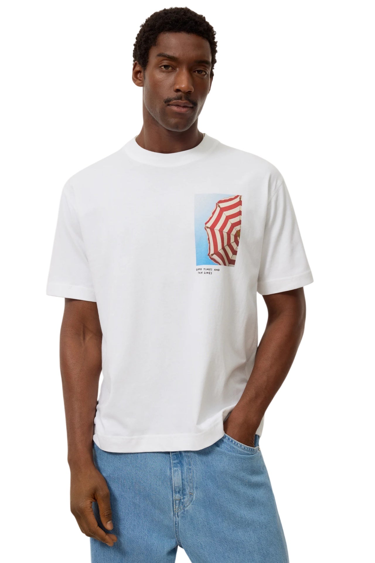 Il jersey semplice, pulito e compatto, realizzato in 100% cotone biologico, tintura a pigmenti. La T-shirt dalla vestibilità regolare presenta una stampa fotografica estiva con la scritta "Bei tempi e segni dell'abbronzatura" sul petto, mentre il nostro logo è posizionato sulla schiena. La nostra modella (187 cm) indossa la taglia M. Lunghezza: 72,5 cm (taglia M) Prodotto in Turchia 100% cotone (biologico) Lavaggio delicato a 30° Non candeggiare Non asciugare nell'asciugatrice Mescolare a bassa temperatura Lavare a secco